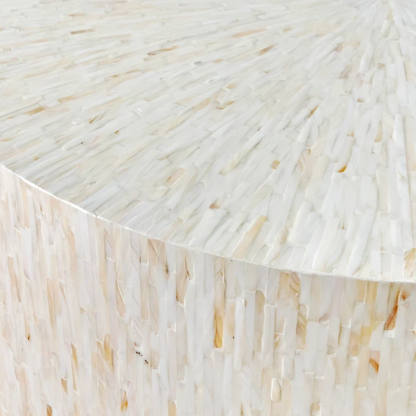 Our Alexandria Mosaic Coffee Table is the prettiest central perch for entertaining. Mother-of-pearl mingles with a cool ivory finish, creating a light-catching mosaic. A go-to golden leaf base elevates our glam design.
