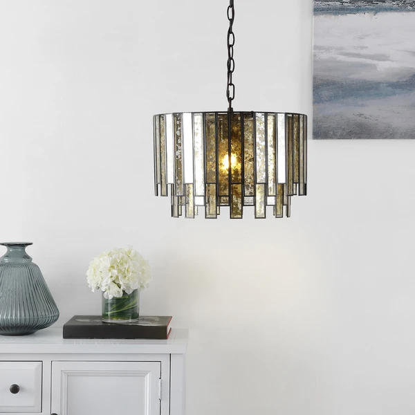 Vintage decadence gets a chic new upgrade in this Chandelier. Casting warm light into any room, it’s outlines in oil rubbed bronze beautifully offset its staggered, geometric glass tiers, giving your dĂ©cor a dazzling touch of glamour.