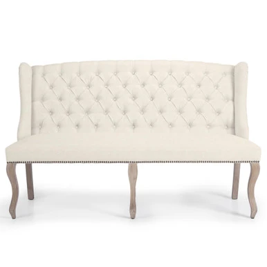 For those who love a luxe seating companion, look no further than our Archer with its nailhead trim, curvaceous legs, and tufted, structured look. Shown in Kenley Chenille Canvas with antique brass nailheads.