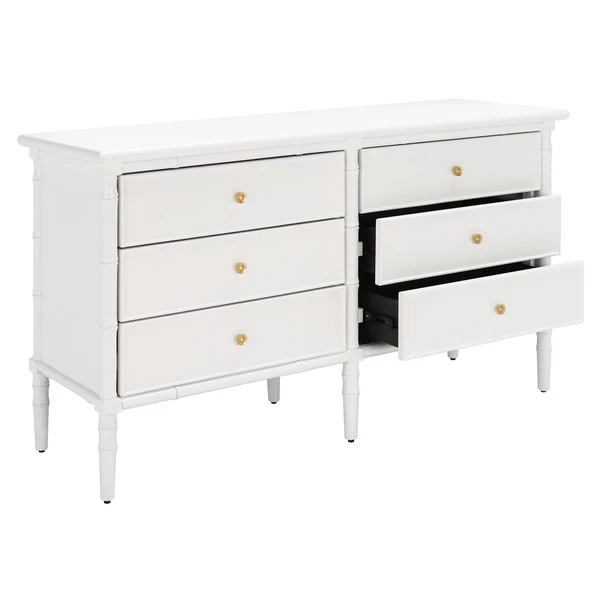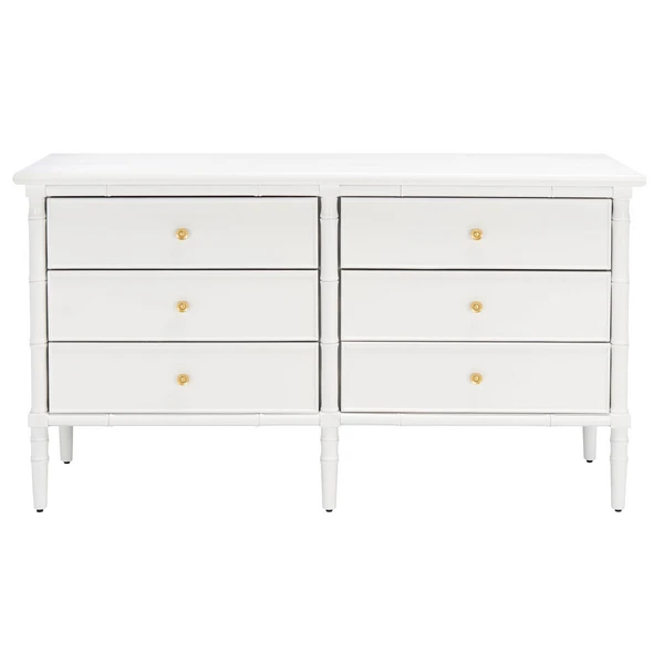 Designed with bamboo-like detailing and beveled hardware, this six-drawer dresser will add Chinese Chippendale charm to the bedroom.