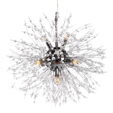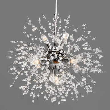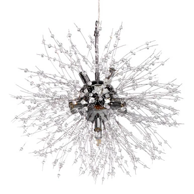 Sophistication meets whimsy in this ethereal secret-garden-inspired chandelier, aptly named Fleur. A sphere of light-reflecting crystal beads appear to float in thin air thanks to artful steel suspension cables.