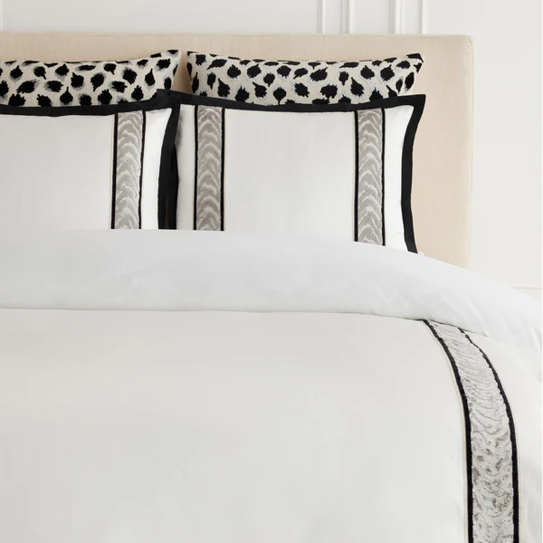Adorned with a cut velvet, tiger-stripe appliqué border, our Gianna bedding collection brings blissful softness and wild style to the bed.