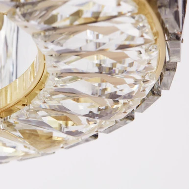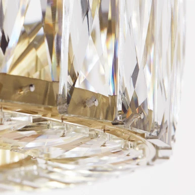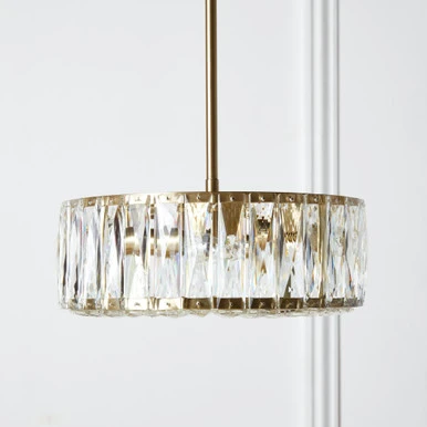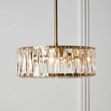 Elegantly simple and modern, the Gleam Lighting Collection is a solution fit for any space. Finished in soft gold, the pendant is embellished with faceted crystals for a glamorous touch.