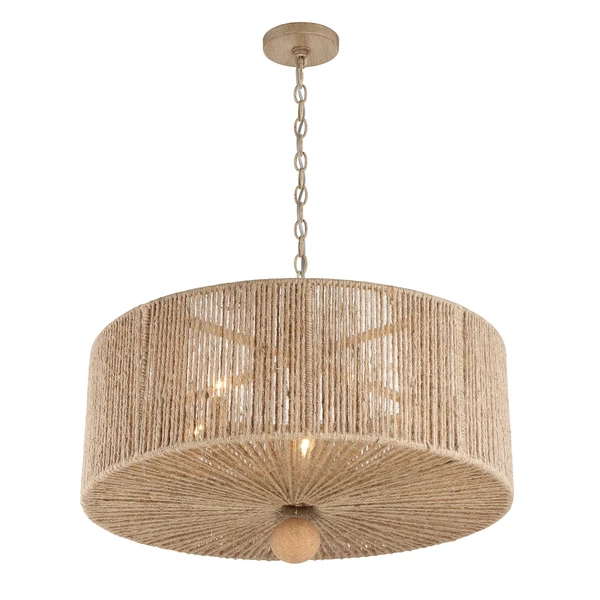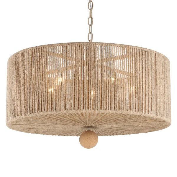 Enjoy a relaxed and casual atmosphere with the subtle beauty of eco-style lighting. Natural jute is wrapped around a metal frame, casting a filtered light for a beautiful soft glow. The earth tones embody a laid-back style that is the epitome of boho-chic.