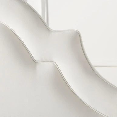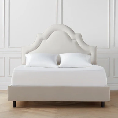 Framed in kiln-dried hardwood with an arched silhouette and neatly tailored upholstery, this bed adds classic glamour to the bedroom. Made in the USA. Shown in Velvet Light Grey.
