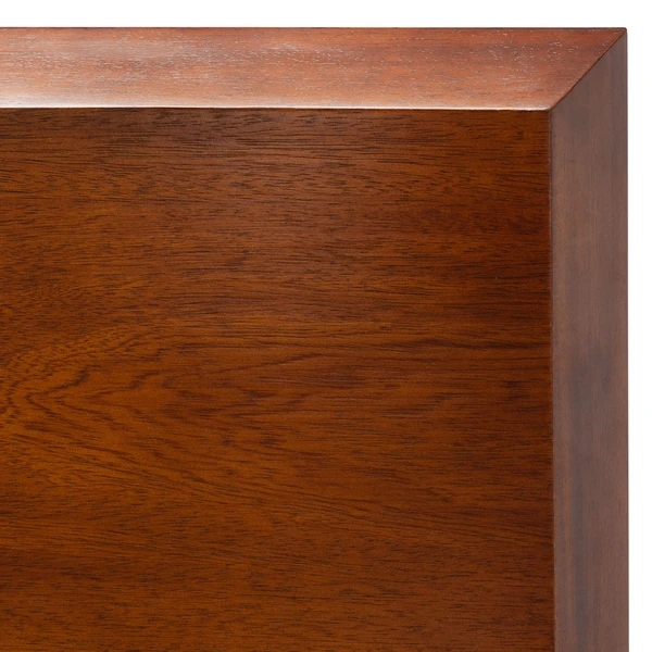 Overflowing with Mid Century charisma, this Lawrence Bed revitalizes retro chic charm for todayâs contemporary bedrooms. A smooth walnut finished frame, crisp angles, and splayed legs are perfect for elevating the aesthetic of any boudoir, making Lawrence a favorite of fashion forward designers. Sized for a standard queen bed.