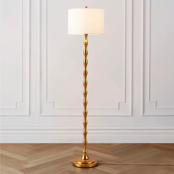 Topped with a crisp drum shade, this floor lamp is crafted with an undulating design that adds texture and visual interest. An antiqued gold finish brings plenty of warmth and shine.