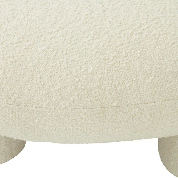 Plush bouclé fabric adds to the cozy-chic vibe of this comfortably cushioned ottoman.