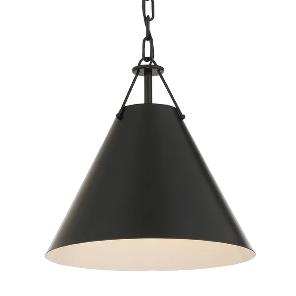 Stylish, modern, and minimal, this pendant light features a two-toned tapered metal shade in velvety matte black and white that maximizes the design’s versatility.