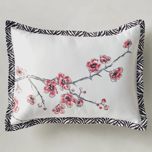 Combining painterly cherry blossoms with a black-and-white zebra print, our silky soft Sakura bedding collection brings glam, feminine flair to the bed.