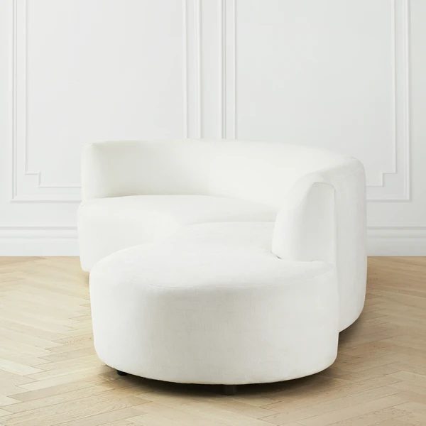 With its elegantly curved silhouette, neatly tailored upholstery, and extra-deep seats, this low-profile three-piece sectional makes a stylish, modern statement in any space. Shown in Maxwell Linen Oyster.