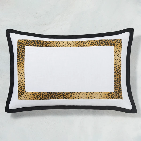 Superbly soft and refined in ivory linen-blend fabric, our Selena Frame bedding collection is detailed with a leopard-print appliqué border and contrasting flange trim for a glamorous finishing touch. Made to order in the USA.