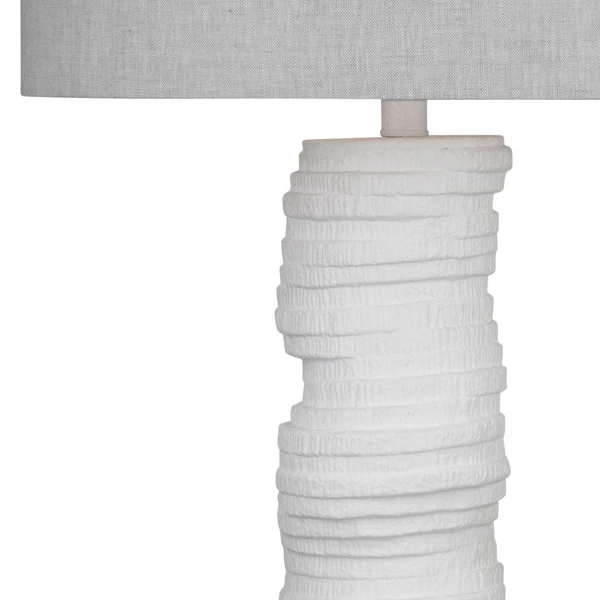 The Solin Table Lamp is crafted of ceramic with a gray linen drum shade.